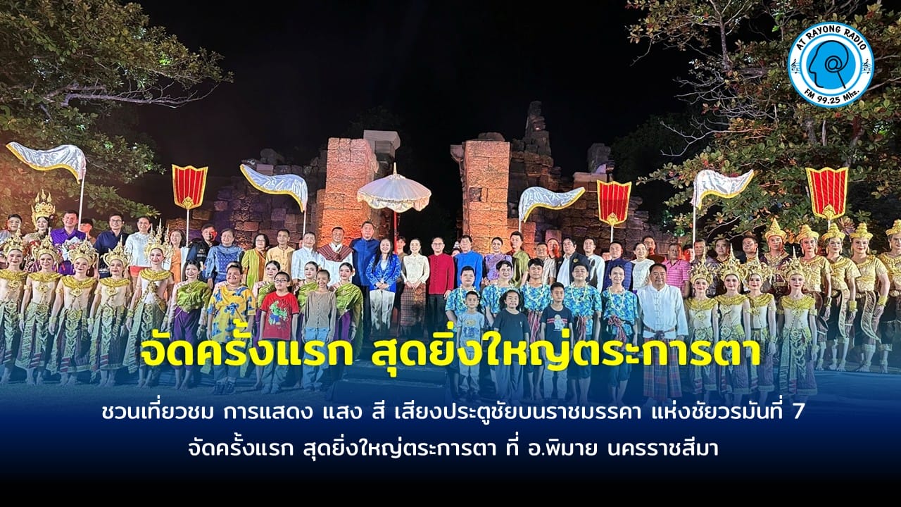 เมื่อเวลา 19.00 น. วันที่ 6 มิ.ย.68 ผู้สื่อข่าวรายงานว่า ดร.ยลดา หวังศุภกิจโกศล นายก อบจ.นครราชสีมา นายศิวะเสก สินโทรัมย์ นายอำเภอพิมาย, นายชนม์บันลือ วรรธนพันธุ์ ท่องเที่ยวและกีฬาจังหวัดนครราชสีมา ร่วมเปิดการแสดง แสง สี เสียง ประตูชัยบนราชมรรคา แห่งชัยวรมันที่ 7 อย่างยิ่งใหญ่ตระการตา โดยมีนางรุ่งทิพย์ บุกขุนทด ผอ. ททท. สำนักงานนครราชสีมา นายวัชรพล สารสอน ผอ.ททท.สำนักงานระยอง อีกทั้งผู้บริหาร ข้าราชการท้องถิ่น ประชาชนในท้องถิ่น เข้าร่วมงานจำนวนมาก