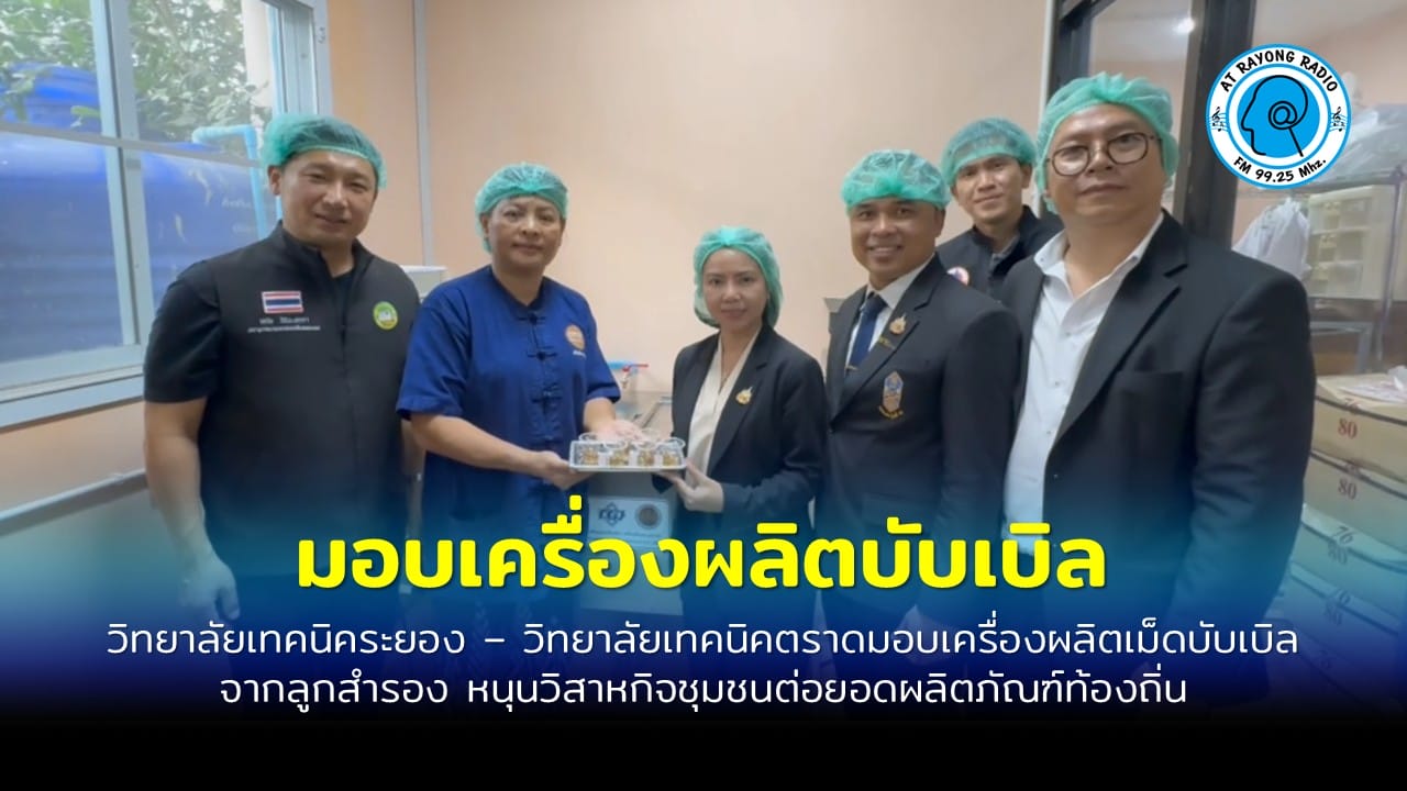 วันที่ 13 กุมภาพันธ์ 2569 ณ วิสาหกิจชุมชนครัวแม่ฉัน By Nana ตำบลเนินพระ อำเภอเมือง จังหวัดระยอง ได้มีพิธีส่งมอบเครื่องผลิตเม็ดบับเบิลจากลูกสำรอง (Bubble pellet making machine from tamarind pulp) ผลงานจากความร่วมมือของคณาจารย์และนักเรียนอาชีวศึกษา โดยมีนายกิตติพงค์ อุตตมะเวทิน ผู้อำนวยการวิทยาลัยเทคนิคระยอง นายจิรพงค์ ร่มเงิน ผู้อำนวยการวิทยาลัยเทคนิคตราด และนายดนัย วิริยะสหกิจ เลขานุการนายกเทศมนตรีนครระยอง ร่วมส่งมอบให้แก่กลุ่มวิสาหกิจชุมชนครัวแม่ฉัน By Nana โดยมีคุณภาวนา คุณาวุฒิ ประธานกลุ่มฯ เป็นผู้รับมอบ