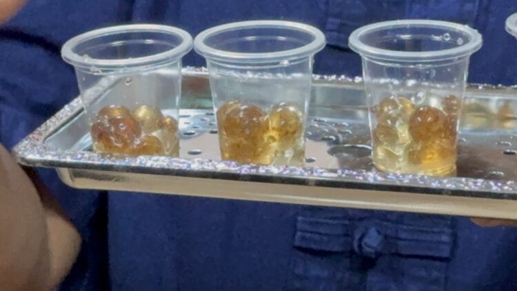 ภายในงานมีการสาธิตกระบวนการผลิต ตั้งแต่การคัดแยกลูกสำรอง แช่น้ำ แยกเนื้อและเม็ด รีดแยกกาก ก่อนเข้าสู่เครื่องผลิตเม็ดบับเบิล จนได้ผลิตภัณฑ์รูปทรงกลมสวยงาม พร้อมนำไปต่อยอดเป็นสินค้าแปรรูปหลากหลาย เช่น เจลลี่ น้ำสำรอง ผงสำรองบรรจุแคปซูล และลูกสำรองบรรจุภัณฑ์ภายใต้แบรนด์ “อิ่มดี”